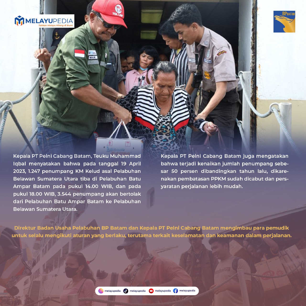 Ia menyatakan peninjauan ini untuk memastikan Pelabuhan yang ada di Batam siap digunakan dalam menyambut para pemudik lebaran tahun ini.