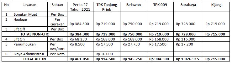 Berikut perbandingan tarif bongkar muat di pelabuhan sejenis :